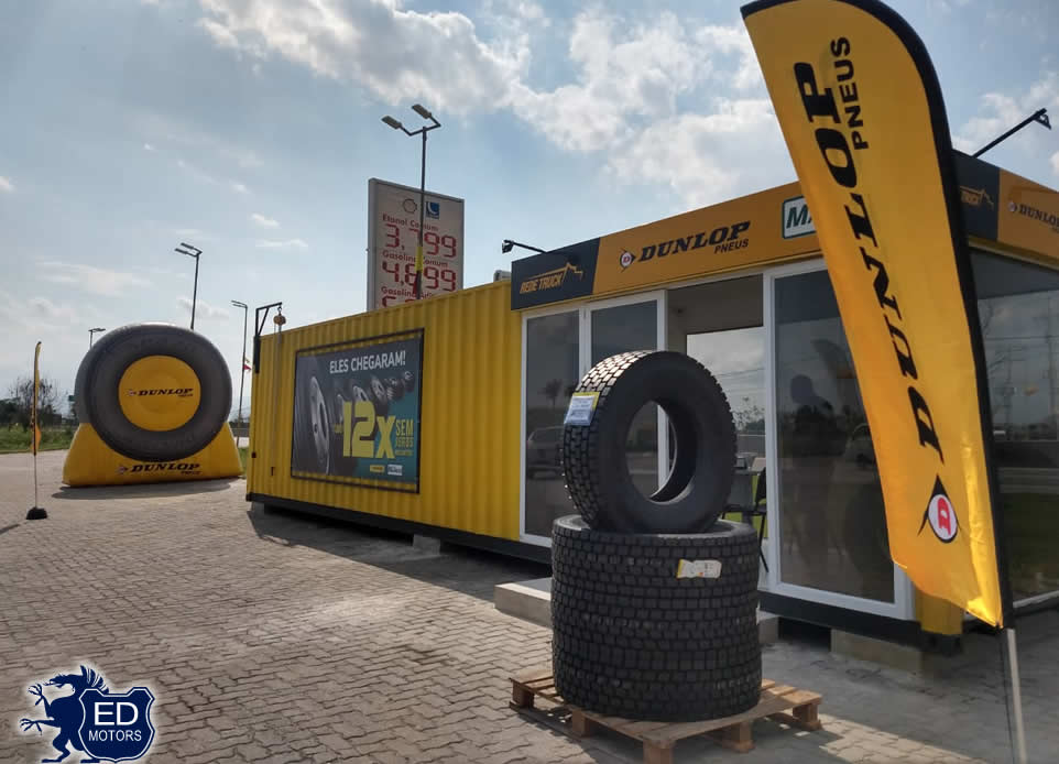 A Dunlop também foi a pioneira em oferecer soluções para o amigo caminhoneiro através das lojas containers, que estão instaladas nas principais rodovias do país e disponibilizam os pneus de carga Dunlop de maneira fácil e sem desvios de rota.