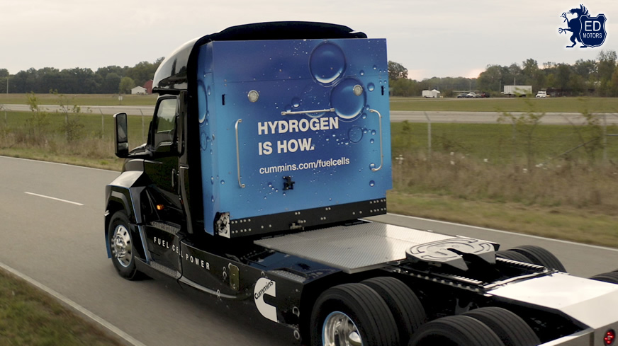 As células de combustível PEM (Proton Exchange Membrane ou Membrana de Troca de Prótons)” da Cummins podem ser encontradas em um caminhão classe 8 para a Comissão de Energia da Califórnia, que inclui não apenas a composição da célula de combustível, mas também o armazenamento de hidrogênio, o sistema de bateria e o trem de força elétrico.