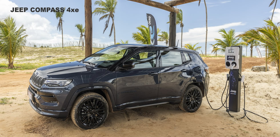 Importado da Itália, o Compass S 4xe é o primeiro dos modelos híbridos plugáveis que a Jeep pretende trazer para o Brasil. Numa primeira avaliação, o motor 1,3 L turbo de 180 cv/27,5 kgf.m (só gasolina) e outro traseiro elétrico de 60 cv/25,5 kgf.m entregam acelerações muito boas mesmo com o peso adicional de 319 kg. São 240 cv de potência combinada. A Jeep indica 0 a 100 km/h em 6,8 s.