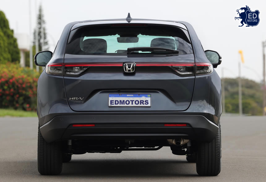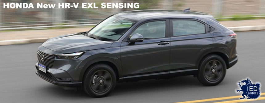 - New HR-V EXL Honda SENSING— Todos os equipamentos acima e/ou: bancos revestidos em couro, Smart Entry (destravamento por aproximação da chave), espelho retrovisor eletrocrômico, faróis de neblina em LED, volante revestido em couro com paddle shifts, apoio de braço central no banco traseiro, rodas de alumínio aro 17″ com acabamento diferenciado, tweeters dianteiros e sensores de estacionamento traseiros.