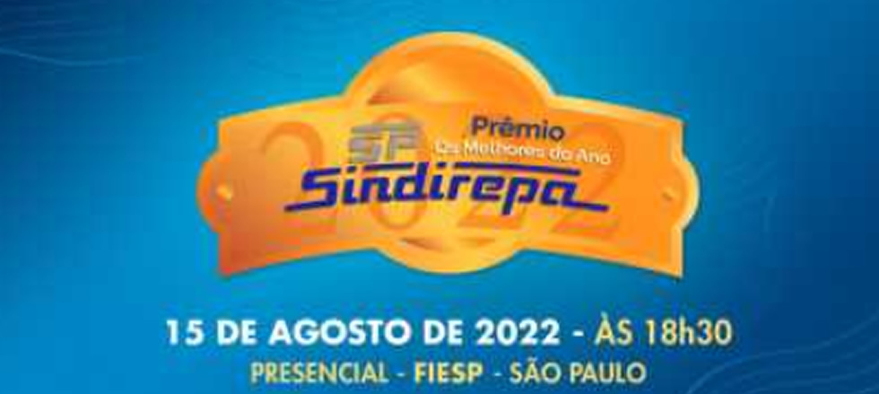 A 13ª edição do Prêmio Sindirepa-SP “Melhores do Ano” voltará ao formato presencial em 2022. O evento será realizado no dia 15 de agosto, no espaço nobre da FIESP, na Av. Paulista, 1313, 15º andar – São Paulo – SP, às 18h30.