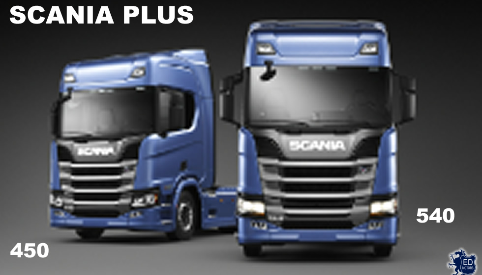 O R 450 Plus oferece 450 cavalos de potência, desenvolve torque de 2.350Nm e duas opções de trações, 4×2 e 6×2, que possibilitam atender uma grande diversidade de operações de transporte. Já o R 540 Plus está equipado com propulsor de 540 cavalos, que garante um torque de 2.700Nm e tração 6×4, ideal para composições de nove eixos. Os motores são Euro 6 de 13 litros e saem de fábrica com freio auxiliar Scania Retarder de 4.100Nm de potência de frenagem, caixa Scania Opticruise GRS905R e freio de exaustão. Os modelos são oferecidos com três pacotes. O Segurança oferece airbag no volante, airbag lateral de cortina (motorista) um item exclusivo da marca, AEB (frenagem de emergência avançada), LDW (aviso de saída de faixa), farol H7 e faróis no teto. Já o Conforto dispõe de cabine Highline, geladeira e multimídia com Bluetooth. Por fim, o pacote Eficiência é composto por defletores laterais e no teto.