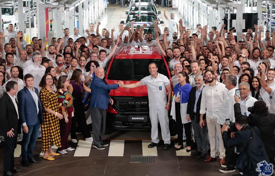 Visita oficial do Presidente da República, Luiz Inácio Lula da Silva, e comitiva marcou hoje o início da produção em série do quinto modelo fabricado no Polo Automotivo Stellantis de Goiana, em Pernambuco. Trata-se da picape Rampage, da marca Ram, que será lançada ao mercado nos próximos dias. Com mais este modelo em linha, o Polo Automotivo passa a produzir veículos de três marcas distintas: Jeep, Fiat e Ram.