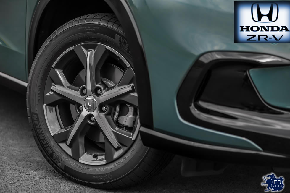 O caráter sofisticado do ZR-V é destacado por detalhes em preto brilhante aplicados na grade frontal (um forte elemento estético, com singular formato de colmeia), na região das portas e nos para-choques dianteiro e traseiro. As rodas de liga leve de 17 polegadas conciliam pintura cinza e acabamento diamantado, reforçando a elegância e esportividade do novo SUV.