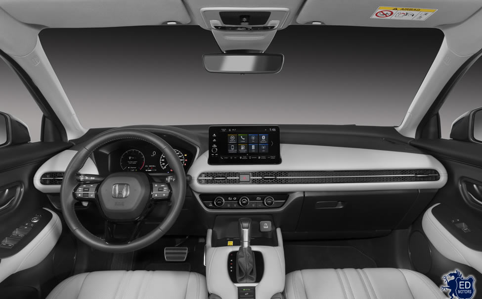 O desenho curvilíneo do exclusivo console central flutuante do ZR-V abriga a alavanca de câmbio e o botão do freio de estacionamento de maneira ideal para facilitar o uso. O volante multifuncional regulável em profundidade e altura é revestido em couro macio e oferece uma agradável sensação ao motorista, sendo dotado de controles de áudio, telefone e de configuração do veículo no raio esquerdo e do controle de cruzeiro e o seletor de informações do carro no raio direito. O volante ainda conta com paddle-shifts para troca de marchas.