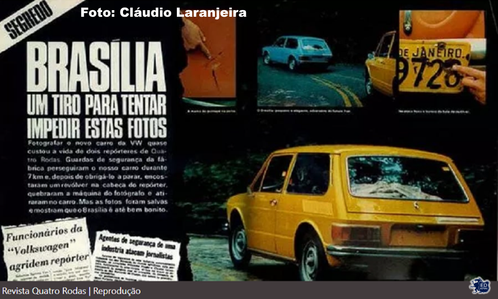 Fazia até “segredos”. Há uma história lendária em 1973. Estava com o jornalista Nehemias Vassão, especializado nesse tipo de investigação. A bordo de um Fuscão, perseguiam um protótipo do VW Brasília nas redondezas da fábrica da Volks, no ABC paulista. O carro estrearia meses depois. O Vassão guiando e o Laranja com meio corpo pra fora da janela para fotografar a novidade.