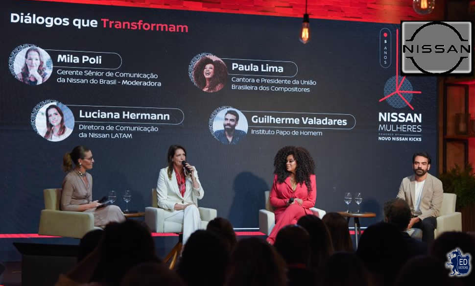 O painel “Diálogos que Transformam”, reuniu Luciana Herrmann, diretora de Comunicação Corporativa da Nissan América Latina, Paula Lima, cantora e presidente da União Brasileira dos Compositores, Guilherme Valadares, diretor de pesquisa do Instituto Papo de Homem, e Mila Poli, gerente sênior de Comunicação da Nissan do Brasil. A conversa abordou temas necessários como os muitos desafios ainda encontrados pelas mulheres no dia a dia profissional e pessoal, a importância da voz ativa e o papel dos aliados, entre outros