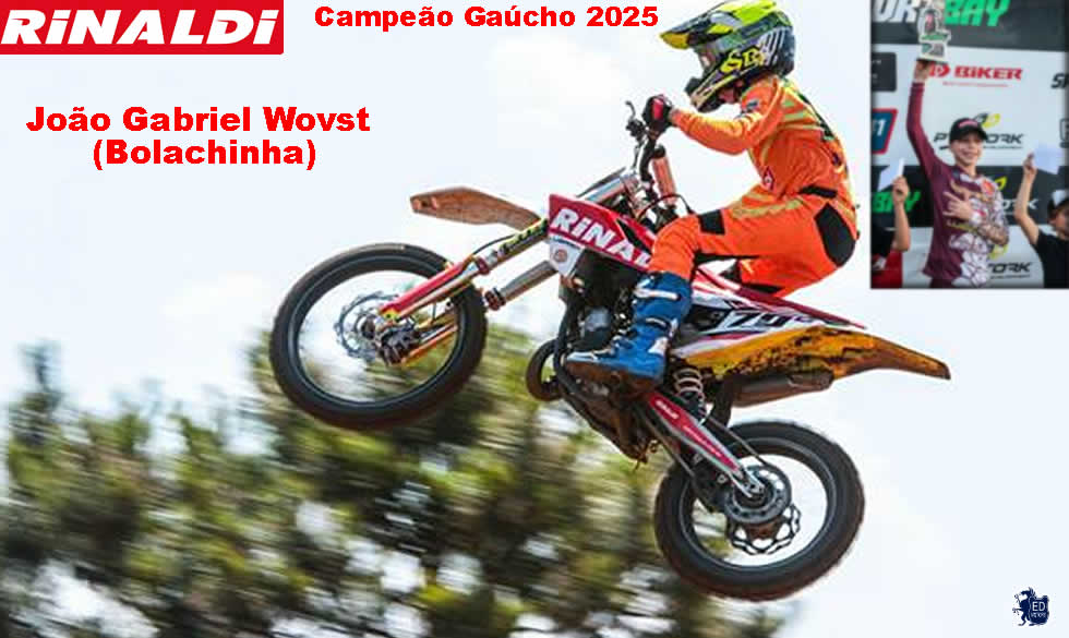 Não deu outra, o primeiro dia de disputas da Final do Campeonato Gaúcho de Motocross trouxe a confirmação dos títulos da 65cc e da Júnior para a Rinaldi. No sábado (15), João Gabriel Wovst #70 (Bolachinha), encerrou a temporada com vitória na 65cc e mais um pódio na Júnior que o consagrou Campeão Gaúcho 2025 das duas categorias, nas quais liderava. De quebra, levou mais dois troféus para casa pelo Holeshot (chegar em primeiro lugar na primeira curva após a largada) nas duas corridas.