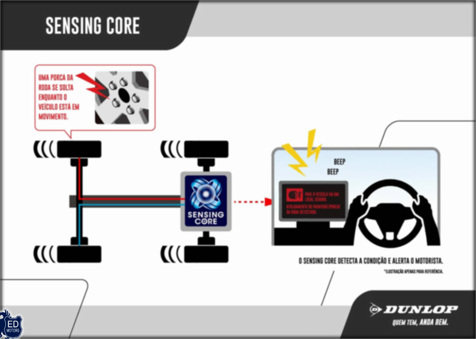O SENSING CORE é uma tecnologia de software que analisa dados de velocidade das rodas, juntamente com informações do sistema de controle do veículo, para detectar diversas condições relacionadas aos pneus e ao solo. Entre suas funcionalidades estão o monitoramento de pressão, desgaste e carga, além da identificação precoce de sinais de desprendimento de rodas.