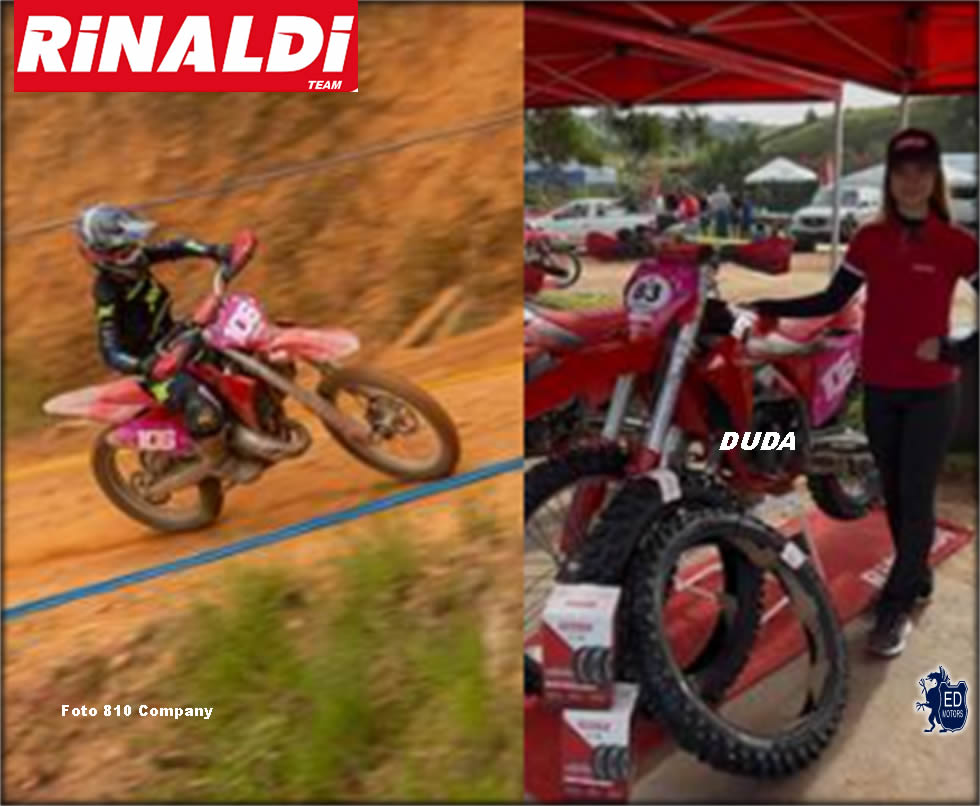 Apesar de ser a primeira prova do Brasileiro equipada com Rinaldi, Duda já começou com vitória no Campeonato Paulista de Enduro, na semana passada (11/4), em Campos do Jordão. “Fiz a minha estreia com os pneus MS49 e as câmaras 4mm reforçadas e venci. Estou muito feliz com essa oportunidade de participar do time da Rinaldi e representar as mulheres com a marca. Agradeço a Rinaldi e a Varella Motos por me proporcionarem algo tão grande e confiarem no meu potencial”, afirma a piloto que conta com o apoio da Varella Motos, distribuidora Rinaldi em Piracicaba (SP).